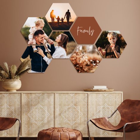 Met jouw foto op hexagon kun je een prachtig kunstwerk op jouw muur ontwerpen. Door te kiezen voor meerdere gepersonaliseerde hexagon tegels creëer je een persoonlijke fotomuur, oftewel hexagon behang. Jouw hexagon foto wordt gemaakt van het lichte, maar sterke forex en hang je eenvoudig aan de wand. Bovendien kan jouw foto met een hoge kleurintensiteit op de hexagon worden geprint. Ontwerp en bestel hier eenvoudig jouw unieke foto hexagon!