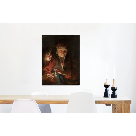 Kunstreproductie van Oude vrouw en jongen met kaarsen, Peter Paul Rubens, Mauritshuis, Den Haag.