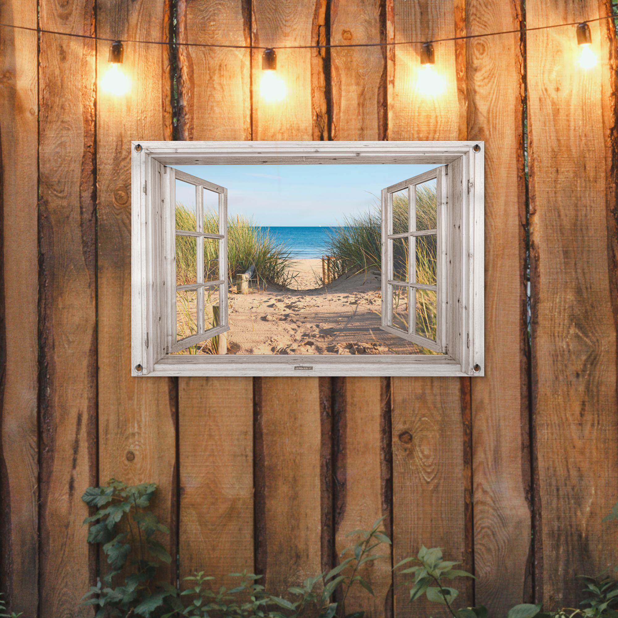 Tuinposter - Doorkijk - Strand - Zee - Duinen - Zand - Water - Helmgras - Liggend