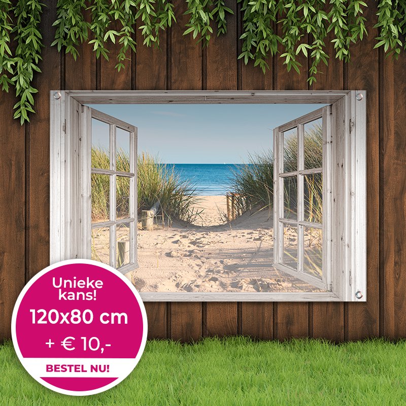 - Jouw tuinposter doorkijk wordt standaard zonder ringen geleverd. Deze kun je voor een klein bedrag bijbestellen.