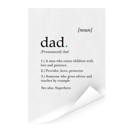 Jouw vader is jouw superheld, dat is duidelijk. Maar verdient een superheld ook niet een mooi kado tijdens Vaderdag zondag 16 juni? Natuurlijk! Laat deze leuke afbeelding met de definitie van het woord “Dad” afdrukken op één van onze verschillende materialen. Daar wordt iedere vader of dad toch blij van?