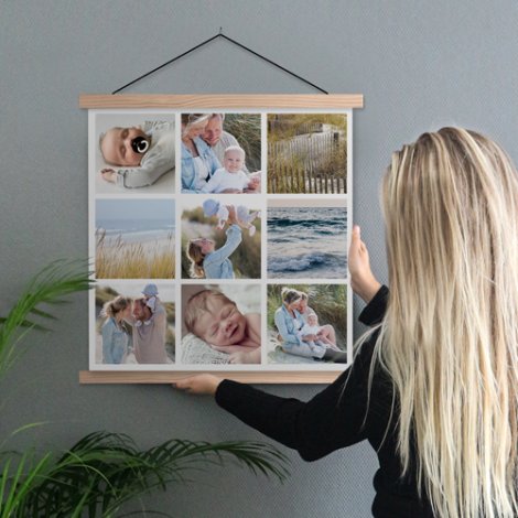 Een schoolplaat is bij het grote publiek inmiddels al bekend, maar een fotocollage op schoolplaat zie je minder vaak voorbij komen in het interieur. Een fotocollage op textielposter is dan ook een originele manier om een twist te geven aan jouw favoriete foto’s. Bovendien is het mogelijk om de fotocollage op schoolplaat verder te personaliseren door middel van het uitkiezen van de kleur latten en het formaat van de schoolkaart collage.
